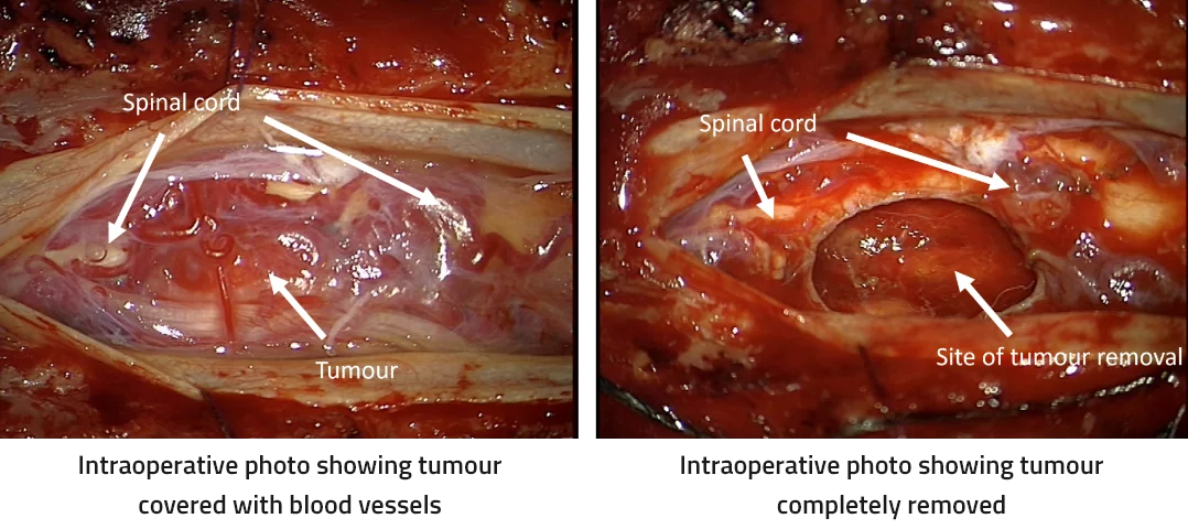 The vascular tumour was removed, and his gait was significantly improved following surgery.